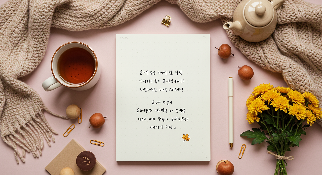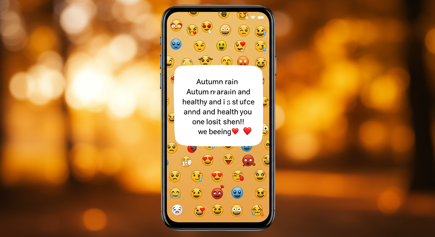 "☔ 가을비에 감기 조심! 따뜻하게 입고 우산 꼭 챙기세요 🧣"처럼 이모티콘과 함께 쓸 수 있는 짧은 문구는 시각적 효과와 함께 메시지가 잘 전달돼요.